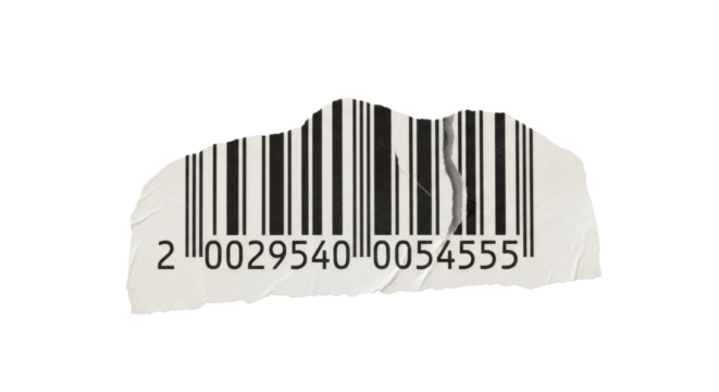 Barcode label product identification code scanning retail upc symbol price tag sticker inventory management on transparent background