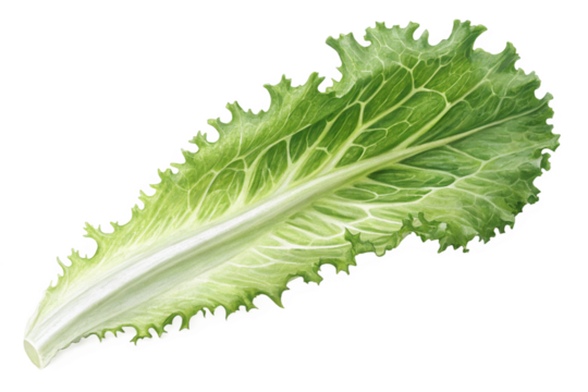 Fresh Endive Leaf Isolated on transparent background Close-Up View