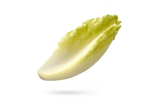 Close-up of a fresh belgian endive leaf, showcasing its pale yellow color and crisp texture, isolated on a transparent background