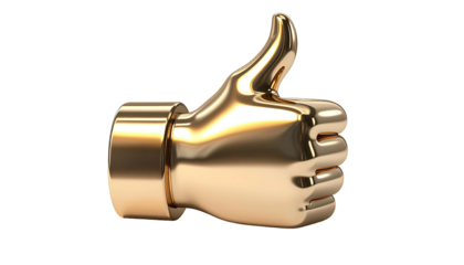 Gleaming golden thumbs-up gesture, rendered in 3D, against a stark black backdrop