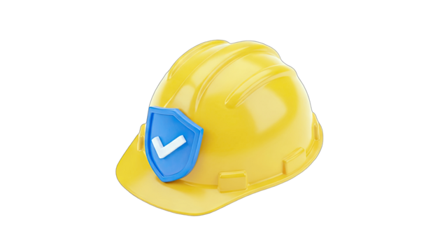Yellow Hard Hat with Shield and Checkmark Symbol