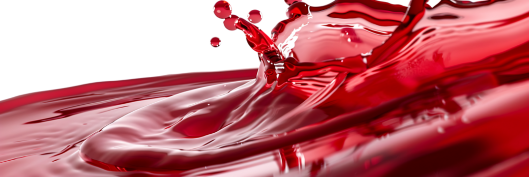 Vibrant and energetic splash of a red liquid similar to red berry jam, syrup, juice or punch, insolaten on withe background
