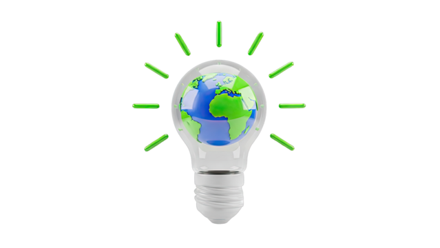 Lightbulb terrarium representing nature conservation, sustainable energy, and a green ecological future, transparent background