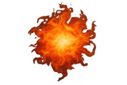 Intense glowing fireball or magical spell creating warm burning energy on transparent background