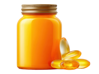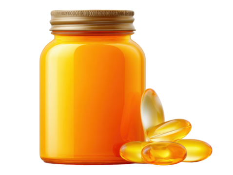 Vitamins and supplements in glass jars bright studio photography. Isolated on transparent background, png.