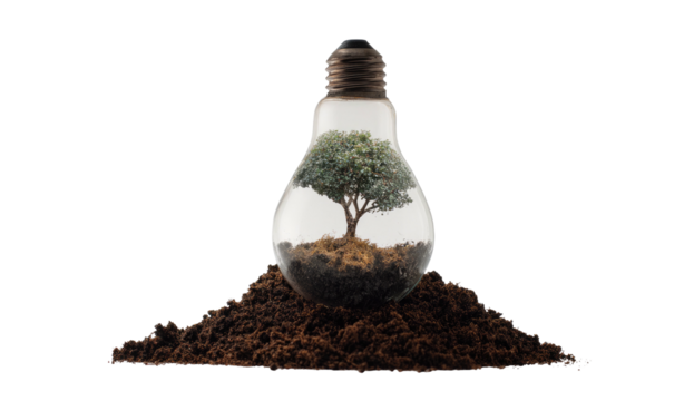 Light bulb with green plant isolated PNG, symbol of renewable energy and environmental conservation, on transparent background
