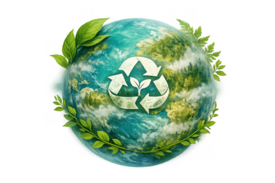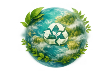 Three ecofriendly light bulbs with earth globes, symbolizing green energy and environmental ideas, isolated on transparent background