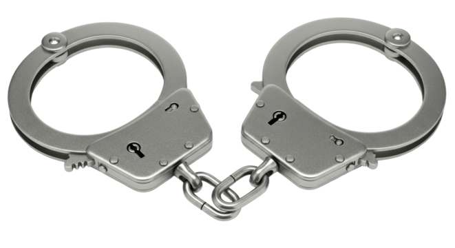 Silver metal handcuffs on transparent background for security and law enforcement design