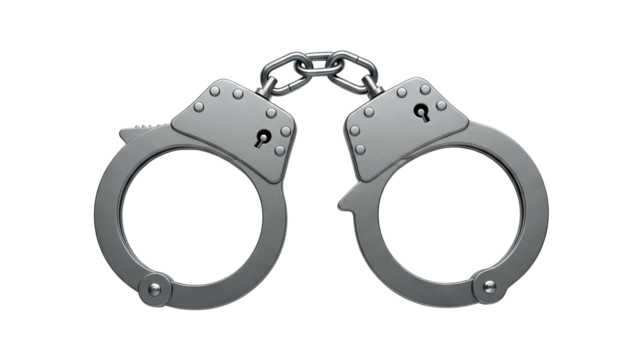 Metal handcuffs isolated on transparent background used for law enforcement