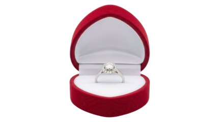 Diamond engagement ring in a red heart-shaped box PNG