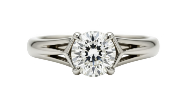 Gorgeous gold engagement ring with diamond isolated in high resolution png style, clean transparent background feel and sparkling detailed cutout ideal for bridal jewelry branding, proposal designs