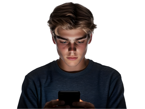 Young Male Engaged in Smartphone Activity Illuminated by Screen in Dim Environment