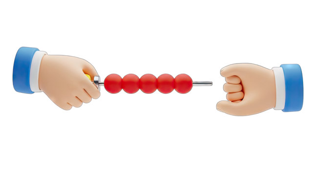 Cartoon Hands Manipulating Red Beads on a Metal Rod Against a Transparent Background Engaging in a Process