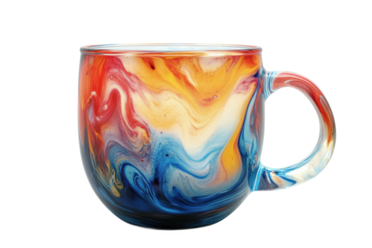 3D Glass Mug with Artistic Painted Design Isolated on White Transparent Background
