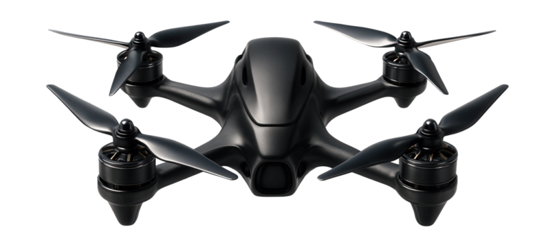 Self-flying drone with dual vertical stabilizers and a sleek, seamless upper surface.