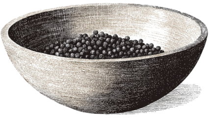 another engraved style bowl of peppercorns artistic or vintage food illustration on white background