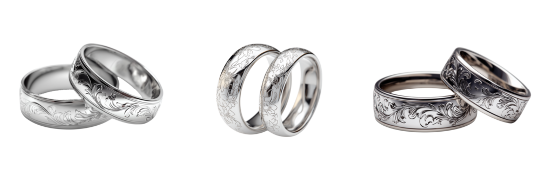 Set of Elegant Bonndorf stainless steel ring featuring detailed Florentine engraving on transparent png background. Ai generated