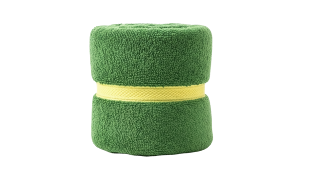 Isolated hand towel roll with yellow ribbon, soft terrycloth, absorbent, bathroom textiles