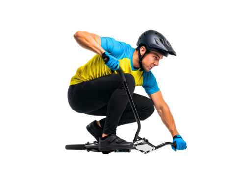 Active Biker Preparing Bike: A dynamic image showcasing a biker in action, engrossed in preparing their mountain bike. Dressed in vibrant biking apparel.