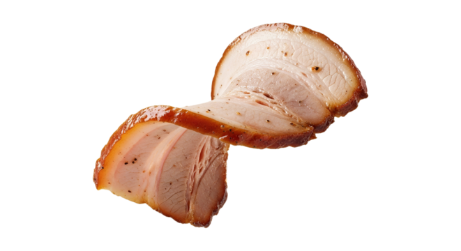 Delectable pork belly slices featuring a tempting glaze and intricate marbling details, presented on a clean, neutral backdrop to enhance the