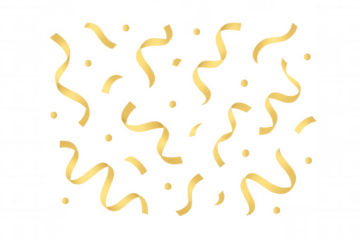 Shimmering golden confetti and ribbons cascading, generating festive mood against transparent backdrop for elegant graphic design enhancement