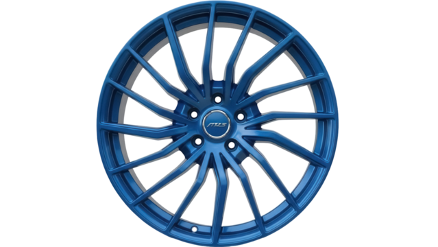 Vibrant blue car rim PNG isolated on transparent backdrop, stylish automotive wheel for custom vehicle design and performance enhancement