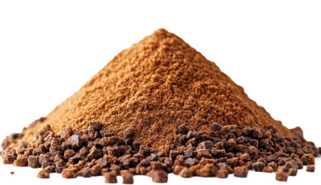 Three types of unrefined cane sugar blocks isolated on transparent background