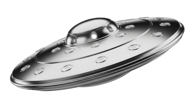 Retro Sci Fi Flying Saucer Spaceship on Transparent Background