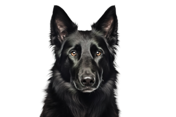 The Enigmatic Gaze of a Majestic Black German Shepherd on White or PNG Transparent Background.