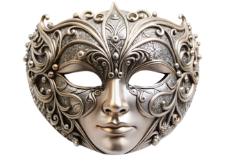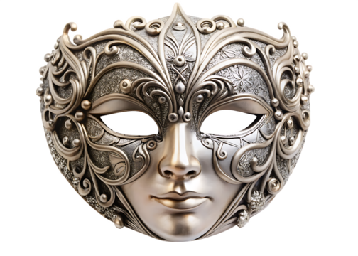 the enigmatic silver mask isolated on white background PNG, AI GENERATED