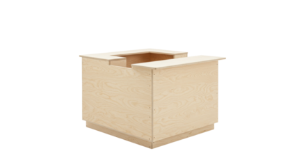 Closeup of wooden door with modern silver handle and knob on transparent background