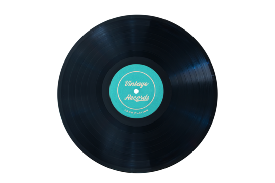 Vintage vinyl record music audio disc isolated on transparent background
