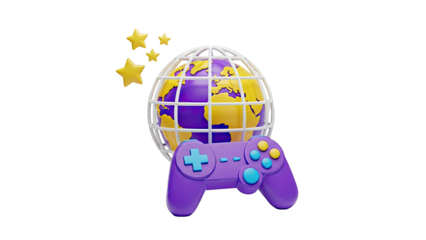 3D Render of Gaming Controller and Globe with Stars