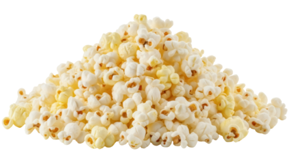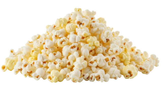 Pile of delicious popcorn isolated PNG on transparent background, classic salty snack for movie night and entertainment