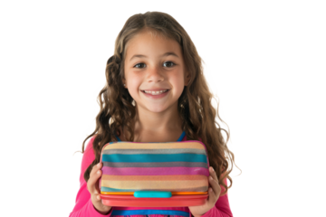 Transparent background portrait of female student with books