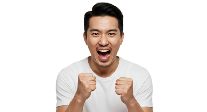 Celebrating achievement gesture portrait enthusiastic isolated on transparent background
