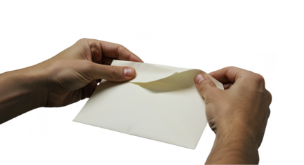 Opened envelope mockup with blank paper isolated on a transparent background, PNG. High resolution.