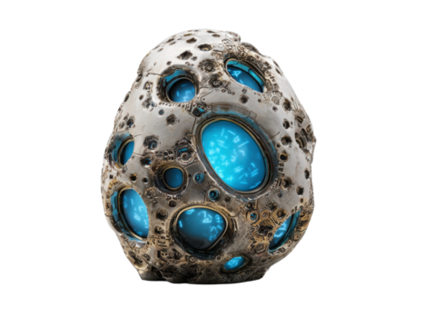 Futuristic blue egg sculpture art gallery 3d art modern enviroment. Isolated on transparent background, png.