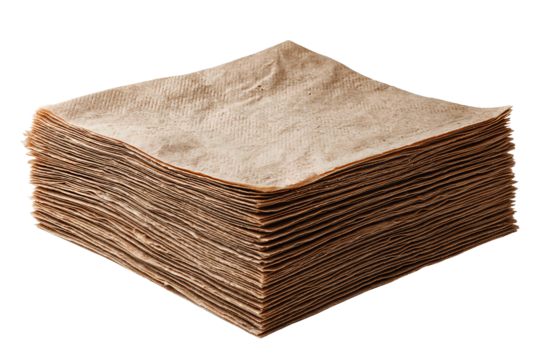Recycled brown napkins stacked together with visible textured edges, isolated on transparent background.