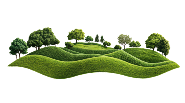 Green hills with trees growing on transparent background representing environmental conservation