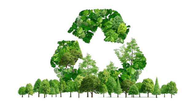 Joyful environmental activists in green shirts with recycle symbol, isolated transparent