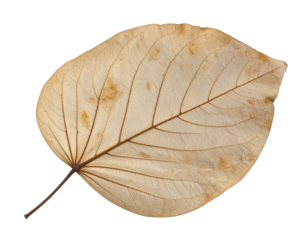 Single dried and pressed leaf with a complex network of veins, isolated on a white background
