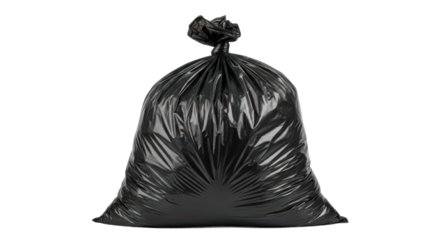Orange garbage bag isolated on white background, symbolizing waste management and environmental concerns.