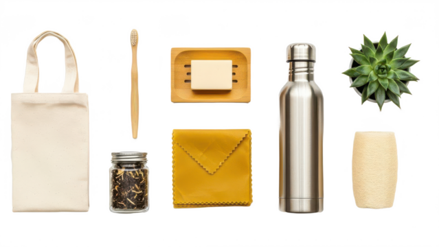 Eco friendly lifestyle items on transparent background