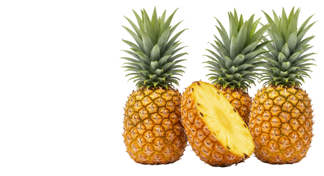 Fresh Pineapples Displayed with One Sliced for a Tropical Fruit Concept