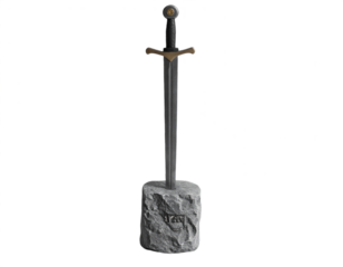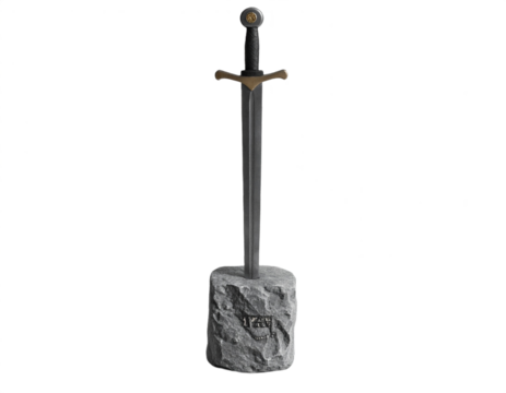 Sword embedded in stone as a symbol of strength and legend on a transparent background, cut out