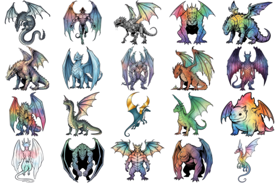 Fantasy Dragons Mythical Creatures Colorful Collection