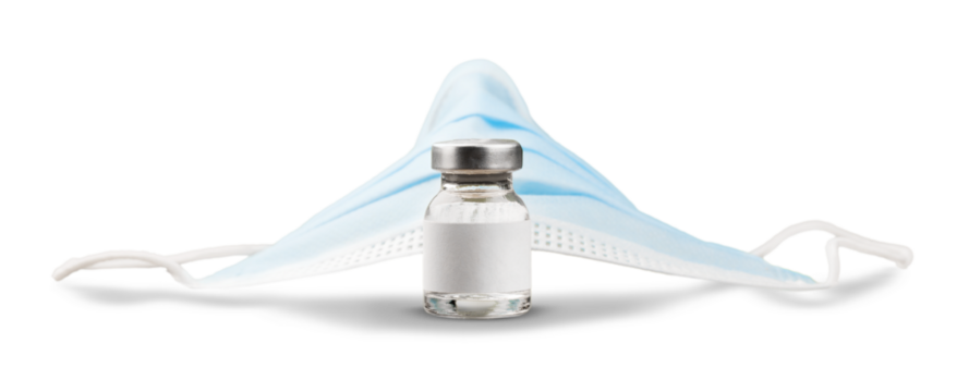 Pharmaceutical medicine capsules and a medical mask. Medicine concept. Coronavirus