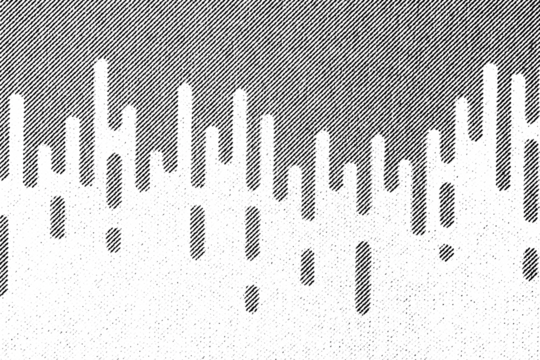 Macro halftone print of vertical rounded bars like a dripping city skyline or audio equalizer, black ink pattern on a transparent PNG background.