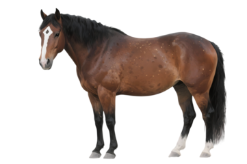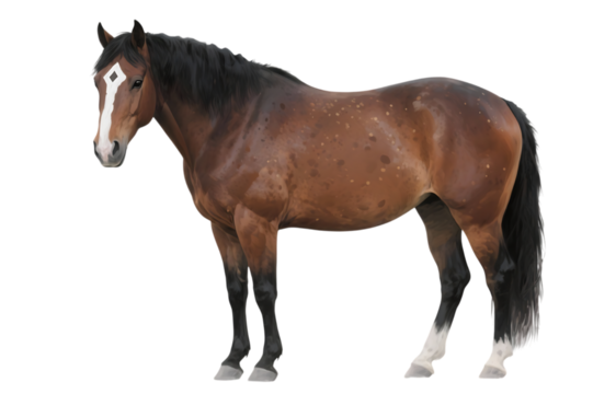 Brown horse standing beautiful stallion with shiny coat and black mane equestrian farm animal portrait thoroughbred equine ranch pet isolated on transparent background